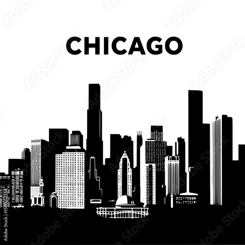 Fototapeta premium Chicago Skyline: A bold monochrome illustration depicts the iconic Chicago...