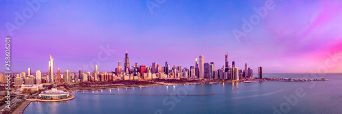 Obraz premium Chicago Skyline Aerial Sunrise Sunset Cityscape Panorama