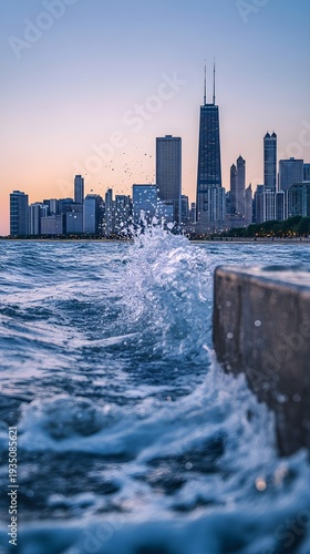 Fototapeta premium Chicago skyline at dusk with water splash image