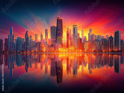 © sharafmaksumov, Fototapeta premium Chicago skyline at night