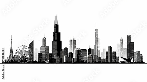 Fototapeta premium Chicago Skyline Bold Black Silhouette Graphic Art Print Urban Landscape Outline Illustration Modern Architecture Minimalist Poster Design