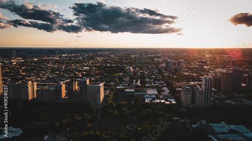 Obraz premium Chicago skyline evening drone aerial footage