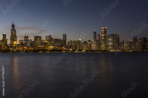 Fototapeta premium Chicago skyline in the evening with calm water