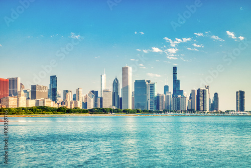 © romanslavik.com, Naklejka premium Chicago Skyline over the Lake Michigan during a Sunny Day