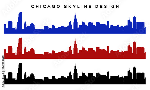 © dezign, Fototapeta premium Chicago Skyline Silhouette – Iconic Cityscape Vector