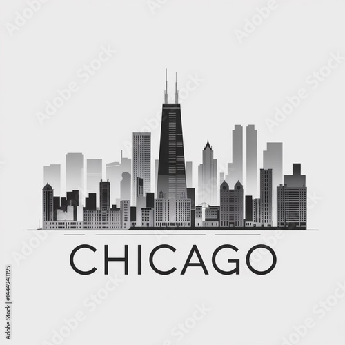 Naklejka premium Chicago Skyline Silhouette — Iconic U.S. Midwestern City Vector Illustration