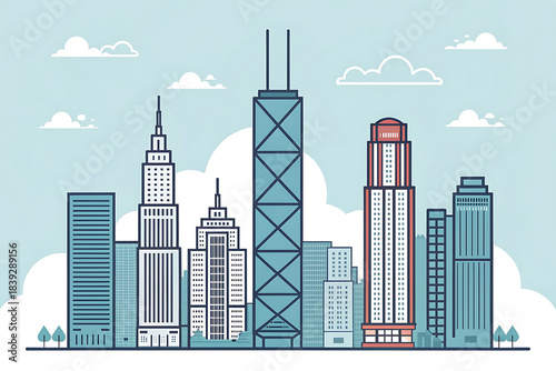 © Panoy, Fototapeta premium Chicago skyline simplified into blocky geometric forms.
