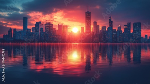 © atul _art, Fototapeta premium Chicago Skyline Sunset: A Breathtaking Cityscape at Dusk