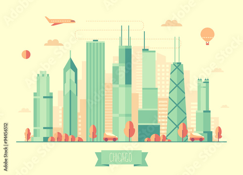 © TheMountBirdStudio, Obraz premium Chicago skyline vector illustration flat design