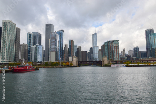 © DD25, Fototapeta premium Chicago skyscrapers, Illinois state city, famous for the fountain and the magical colors of autumn, in the city park