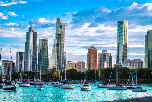 Fototapeta premium Chicago, USA. Chicago skyline and lake Michigan sailing harbor view