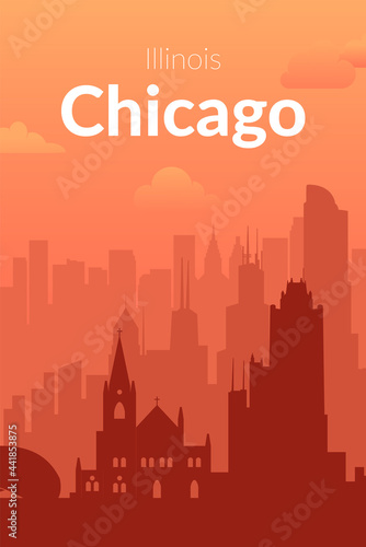 © chuhastock, Obraz premium Chicago, USA famous city scape view background.
