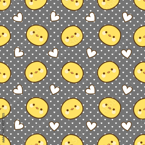 © Gabriel Onat, Fototapeta premium Chick Cartoon Seamless Pattern with Heart Dot