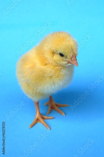 Obraz premium chick in studio blue background chicken hen baby animal