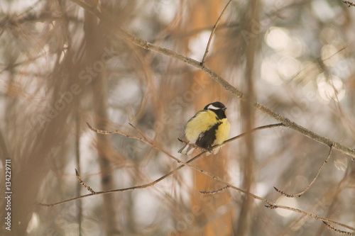 © Дмитрий Носырев, Fototapeta premium chickadee on branch in winter