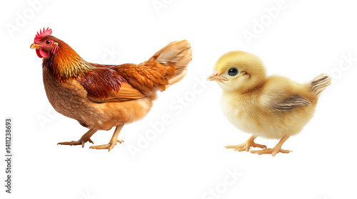 Fototapeta premium Chicken and chick together showcasing farm life, PNG, created with Generative AI
