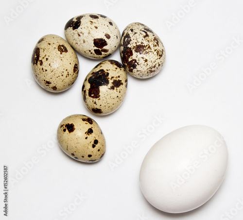 Fototapeta premium chicken and quail eggs on white background