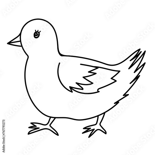 © pictures_for_you, Fototapeta premium Chicken bird line drawing. Doodle vector illustration.