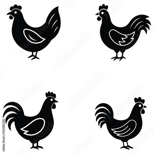 © PuspanjaliRani, Fototapeta premium chicken black icon vector