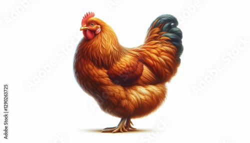 Fototapeta premium Chicken, brown chicken, standing on a white background. Concept of a farmer raising chickens.