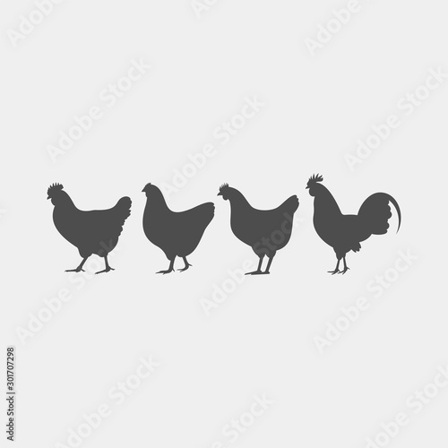 Fototapeta premium Chicken, chick, rooster vector silhouette. Farm birds silhouettes