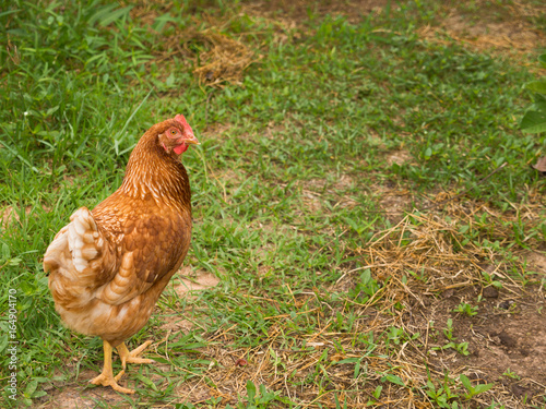 © wichatsurin, Fototapeta premium Chicken Egg Standing on The Lawn