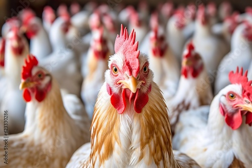 Fototapeta premium Chicken Farm with many healthy chicken and fresh eggs, AI Generative