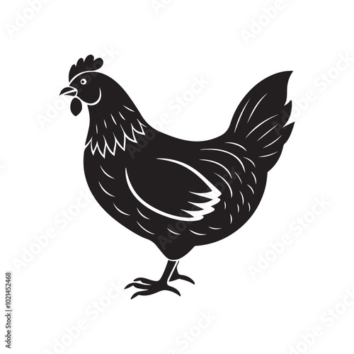 Fototapeta premium Chicken hen silhouette vector, black and white silhouette, vector and illustration, isolated on white background