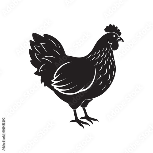 Fototapeta premium Chicken hen silhouette vector, black and white silhouette, vector and illustration, isolated on white background