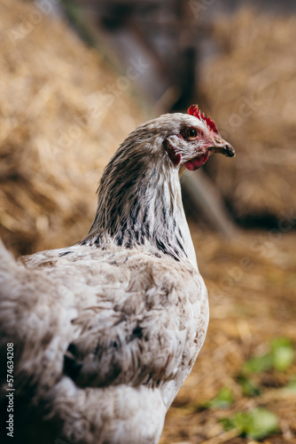 © andrew_shots, Naklejka premium Chicken stay in coop with straw