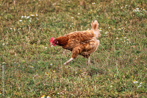 © Leon Woods, Fototapeta premium Chicken walking in a field