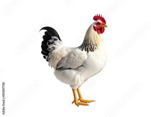 © Wawan, Fototapeta premium Chicken with bold red comb standing tall on bright white background