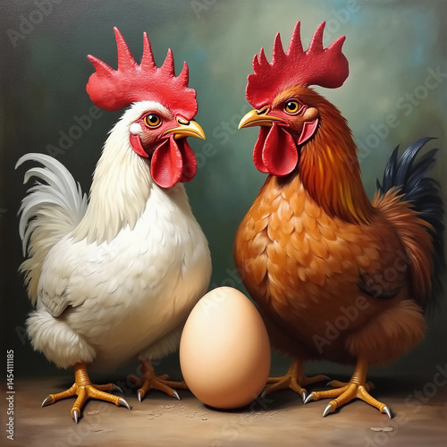 © F@natka, Fototapeta premium Chickens and eggs. Painting on canvas.