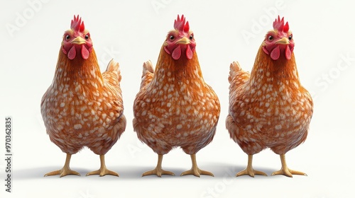 Fototapeta premium Chickens (broilers) clipart, element, 3D illustration, realistic, isolated on white background
