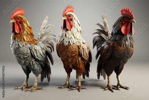 Fototapeta premium chickens exploring the farm, roaming freely in a grassy field,Generated with AI