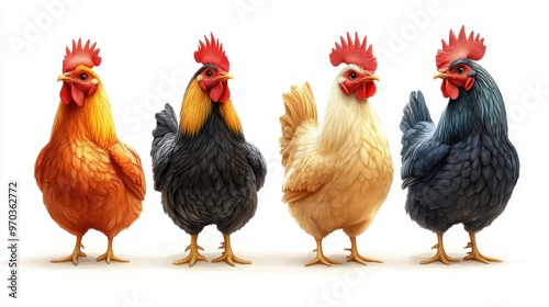 Fototapeta premium Chickens (layers) clipart, element, 3D illustration, realistic, isolated on...