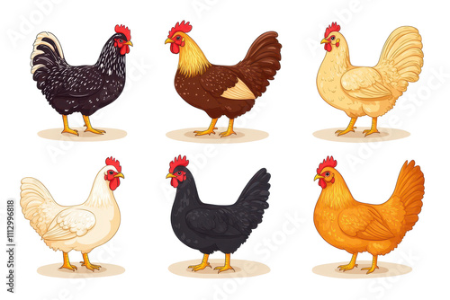 © Oleg, Fototapeta premium Chickens on a white background as part of our roots