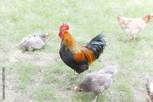 © VALROCK, Fototapeta premium chickens on the grass