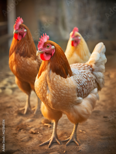 © Nadezda Ledyaeva, Fototapeta premium Chickens on traditional free range poultry farm