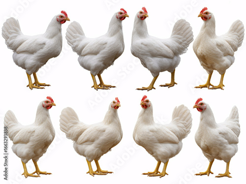© Junaid, Fototapeta premium Chickens Pattern - White Hens on White Background for Farming, Agriculture or Food Industry
