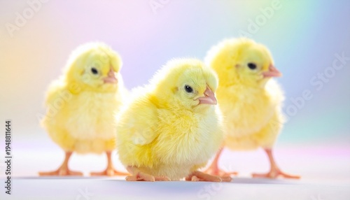 © Ahmer, Fototapeta premium Chicks trio, fluffy innocence, spring vitality