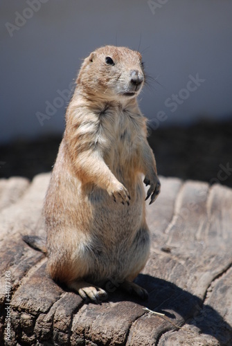 © SoniaandCo, Fototapeta premium chien de prairie (cynomys) en alerte sur un tronc d'arbre