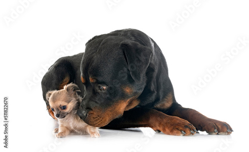 Fototapeta premium chihuahua and rottweiler in studio