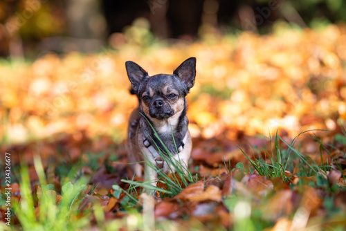 Fototapeta premium Chihuahua beim Gassi gehen im Herbst