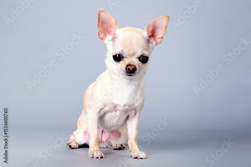 © Garik, Obraz premium Chihuahua dog after express molting on a gray background