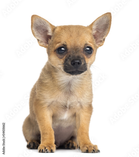 © Eric Isselée, Obraz premium Chihuahua puppy sitting, 4 months old, isolated on white