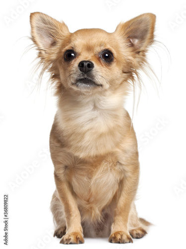 Obraz premium Chihuahua, 2 years old, sitting in front of white background