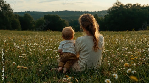 © TUN, Fototapeta premium Child and Parent in Serene Meadow Landscape