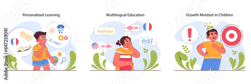 © inspiring.team, Fototapeta premium Child cognitive development set. Process of kids intelligence, creativity