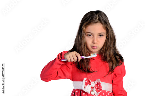 © Alexandra, Fototapeta premium child girl holding brush teeth